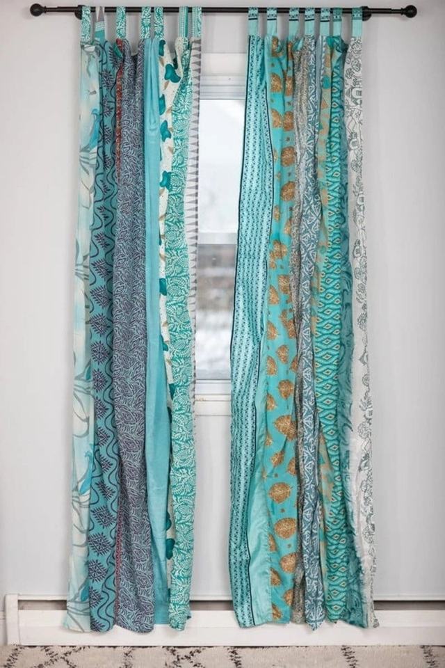 Indian Vintage Old Silk Sari Fabric Handmade Modern Home Door Window Curtain Fruit Knitted Technique Hotel Shade Upcycled Rod