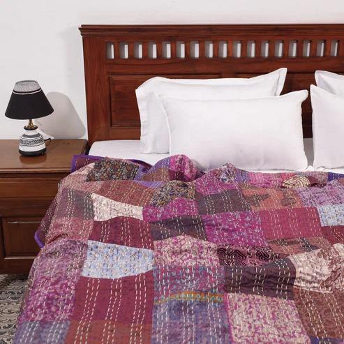 Indian Vintage Patchwork Quilts Bohemian Silk Home Decor Quilts Throw Kantha Reversible Blanket Boho Bedding Bedspread