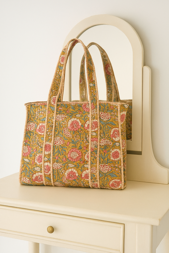 Indian Vintage Bohemian Fashion Quilted Cotton Tote Bag Eco-Friendly Customized Zipper Closure Block Print Handbag Summer Autumn