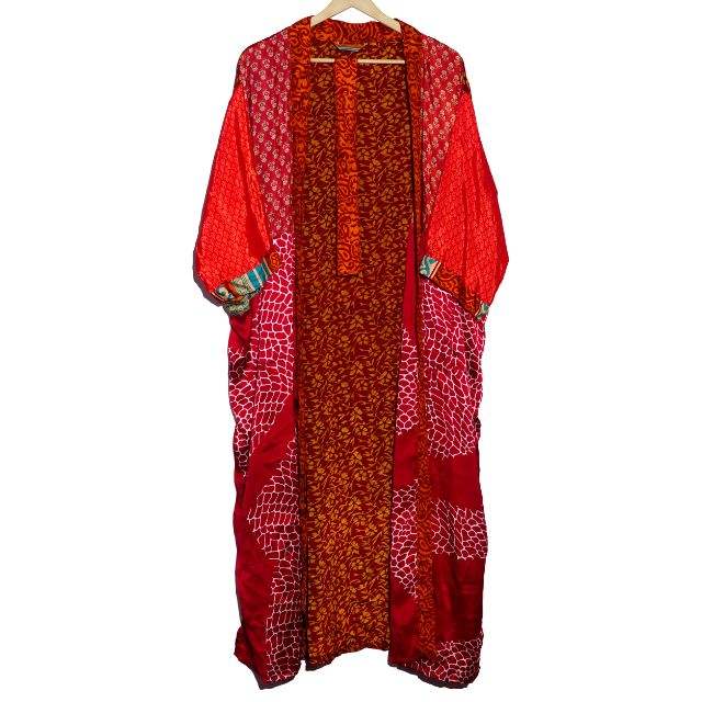 Indian Vintage Recycled Silk Saree Kimono Robe Women Lightweight Floral Wrap Dress Spring Summer Autumn Sleepwear Thermal