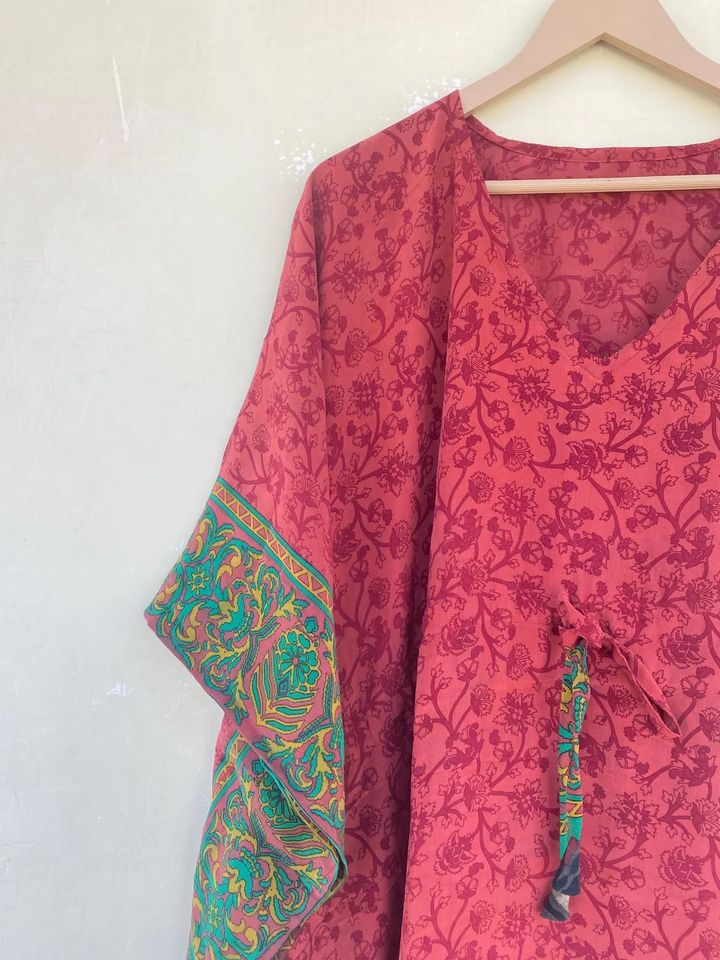 Indian Vintage Recycled Silk Sari Handmade Kaftan Beach Wear Silk Kaftan