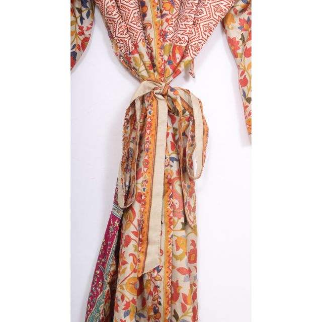 Indian Vintage Silk Spaghetti Strap Kimono Women's Lounge Gown Sleepwear Robe Swimwear Dresses Beach Cover Clothes