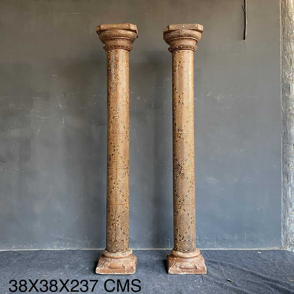Indian Vintage Solid Wood teakwood Hand Carved Decorative Column Pillar for Temple Villa Hotel Projects | Mix Match 1 Container