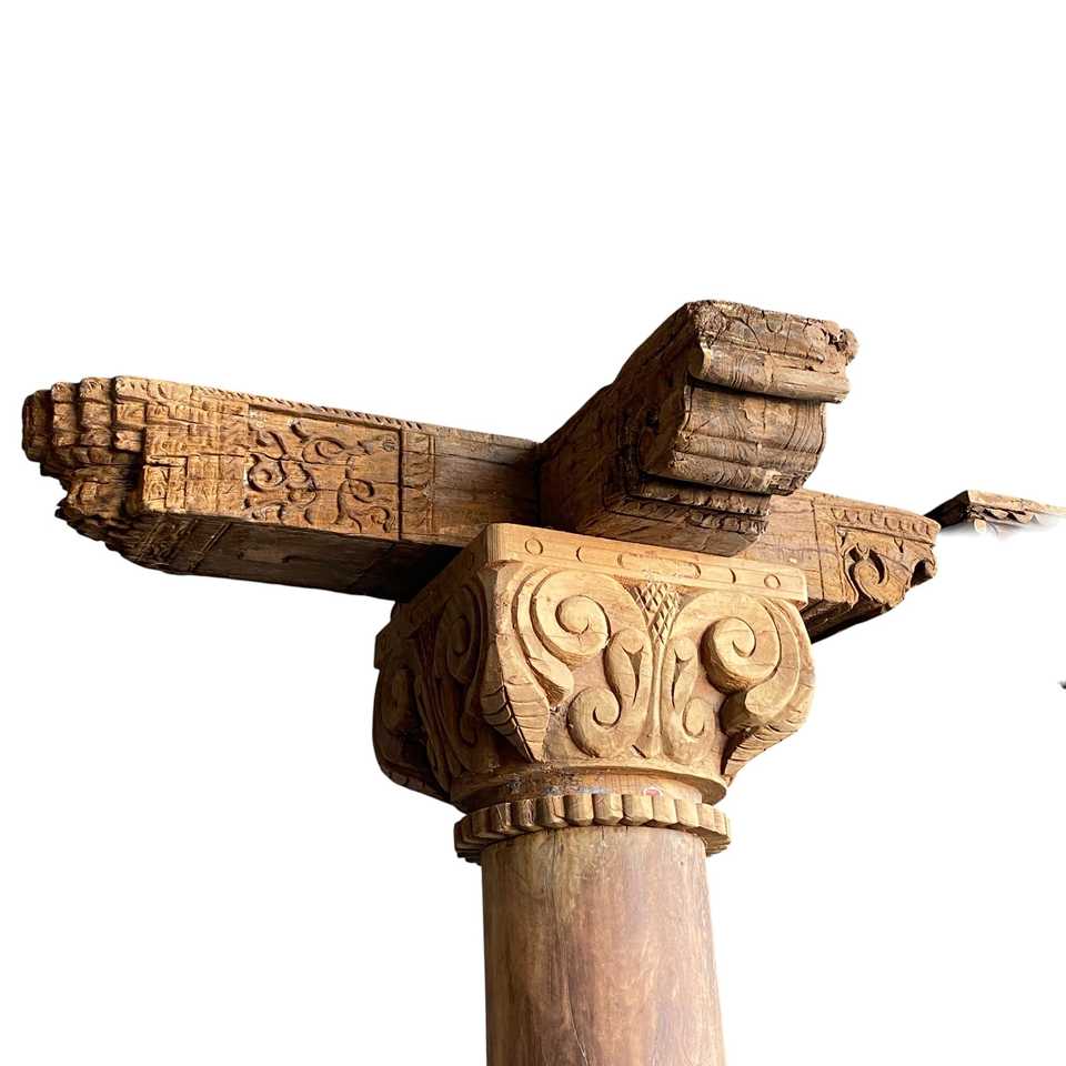 Indian Vintage Solid Wood teakwood Hand Carved Decorative Column Pillar for Temple Villa Hotel Projects | Mix Match 1 Container