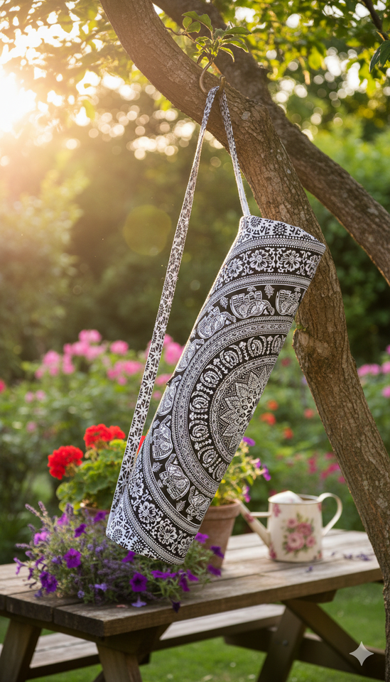 Indian Vintage Lady Mandala Cotton Quilted Luxury Beach Bag Fashionable Yoga Mat Carrier Zipper Shoulder Strap Summer Winter Gym