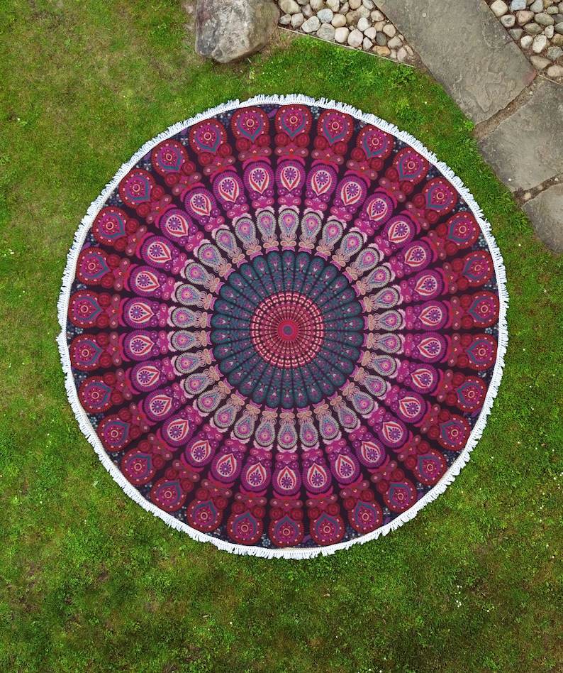 Indian Wall Hanging Dorm Ombre Theme Round Beach Throw Roundie Mandala Yoga Mat Ethnic Pure Cotton Tapestry With Fringe Lace Hem