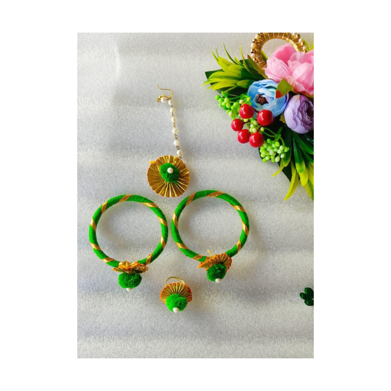 Indian Wedding Bridesmaid Combo Set Kundan Bracelets Ring Mang Tika Favor Return Gift with Small Drawstring Jute Pouch
