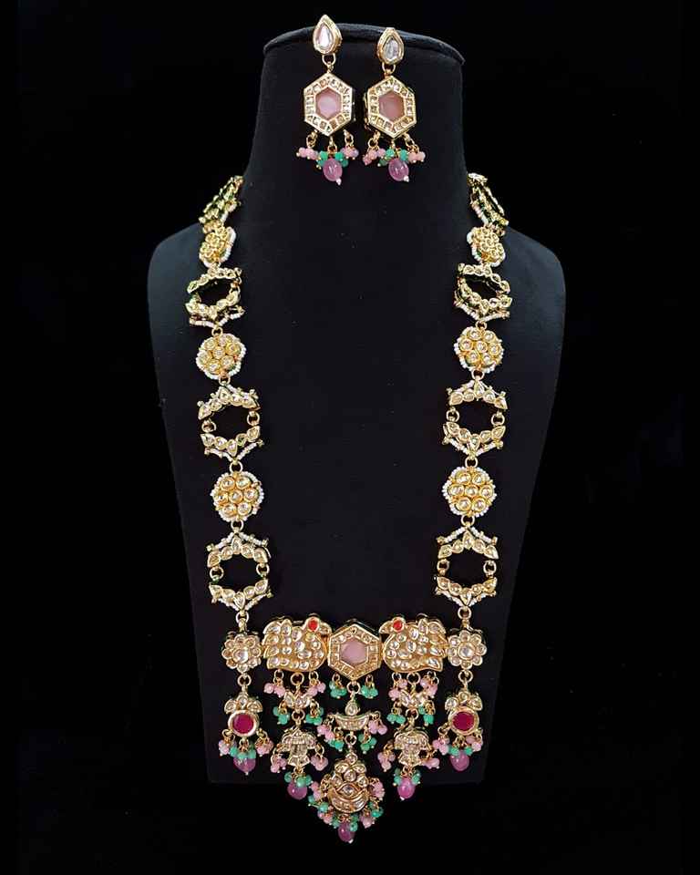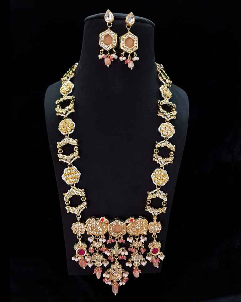 Indian Wedding Queen-Inspired Meenakari Necklace Set and Gold Peach Earrings Brass Choker for Gifts for Weddings