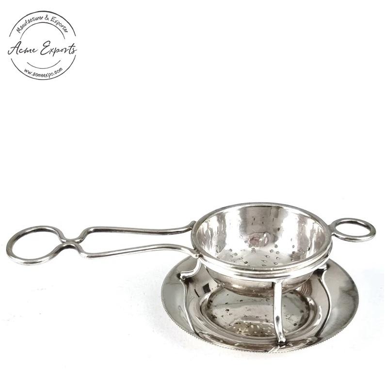 Indian Wholesale Handcrafted Metal Tea Strainer with Drip Stand for Teapot Loose Tea Leaf Kitchen Tea