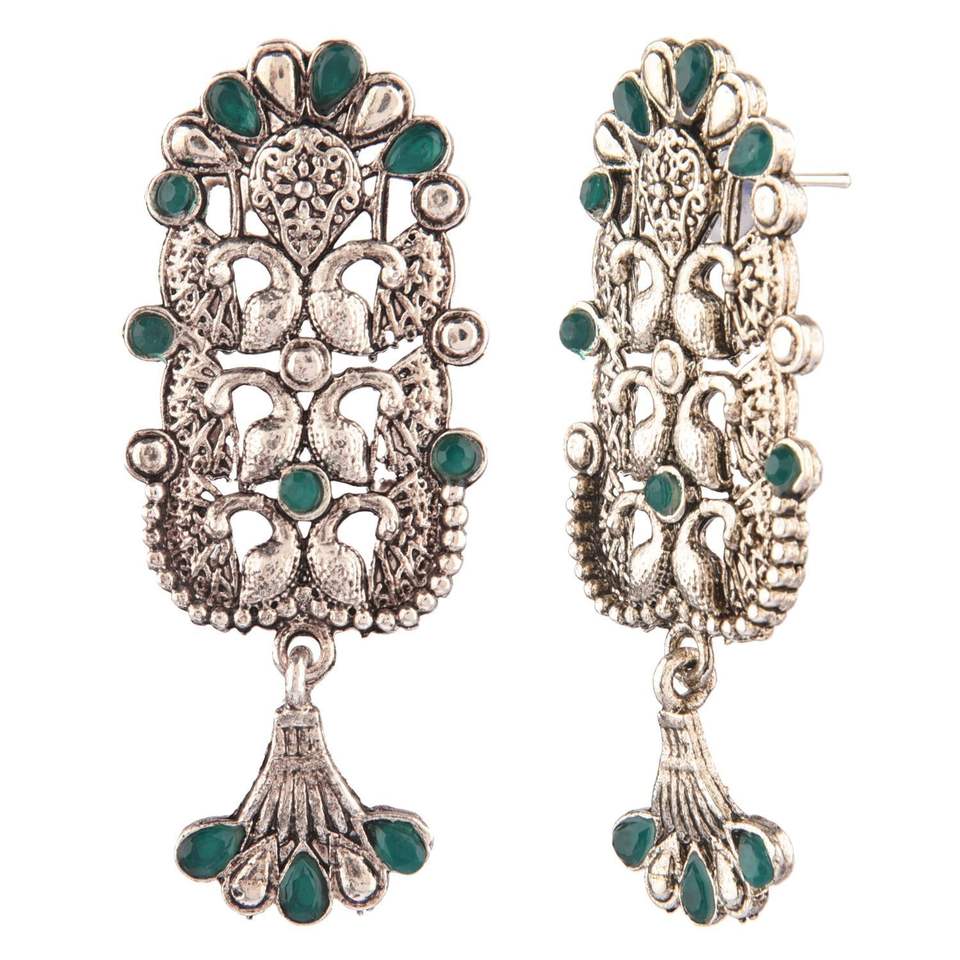 Design:Antique handmade boho vintage oxidized silver tone big dangle earrings