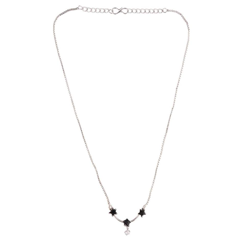 Indian Wholesale Jewelry CZ Cubic Zirconia Solitaire Silver Pendant Chain Necklace Jewellery Manufacturers, Black