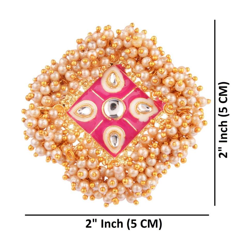 Indian Wholesale Jewelry Gold Plated Kundan Faux Pearl Beads Enamel Adjustable Finger Ring For Women, Pink