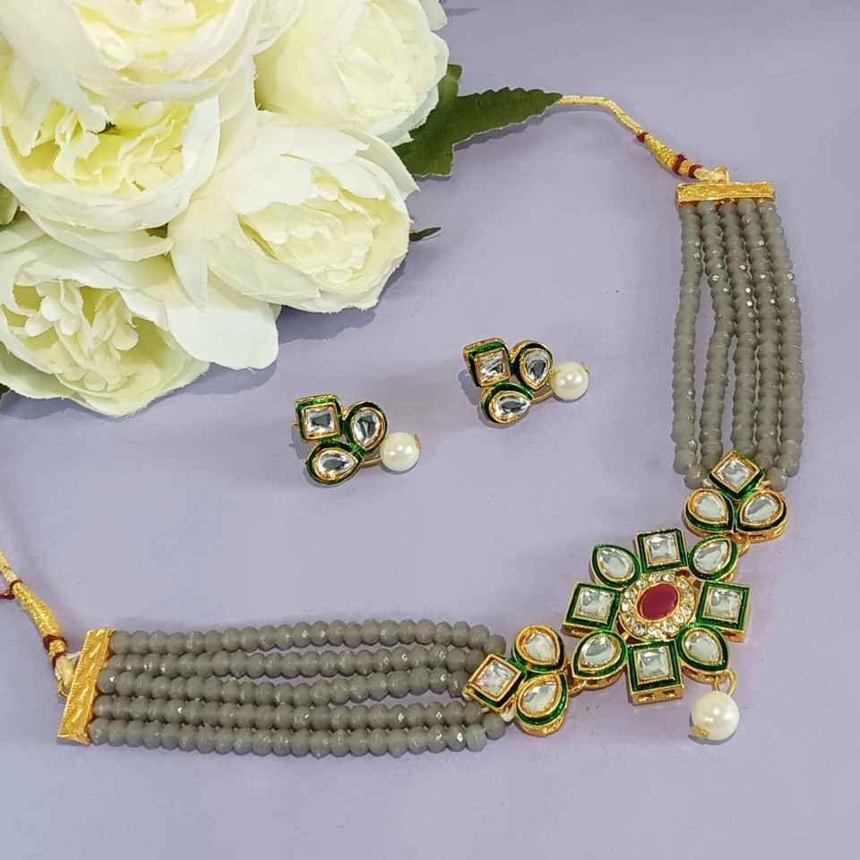 Indian Wholesale Jewelry Kundan Jewellery Faux Pearl Beaded Grey Choker Necklace Jewellery Set Indian Bridal Jewelry Set
