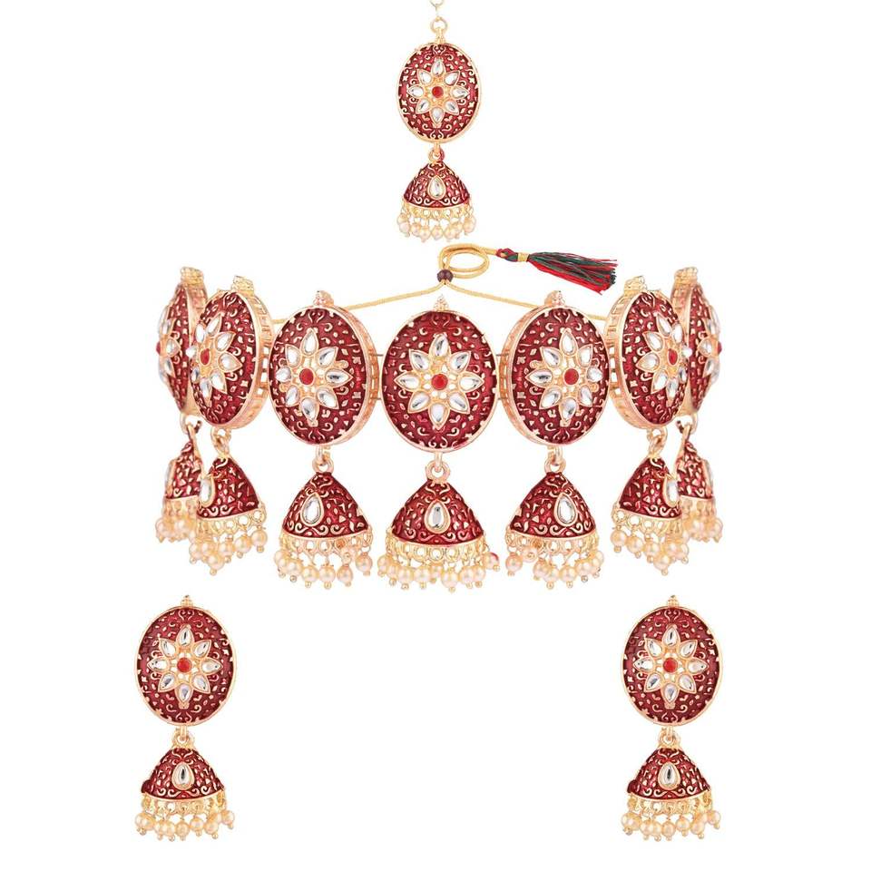 Design:Indian kundan stone crystal choker necklace bridal jewelry set