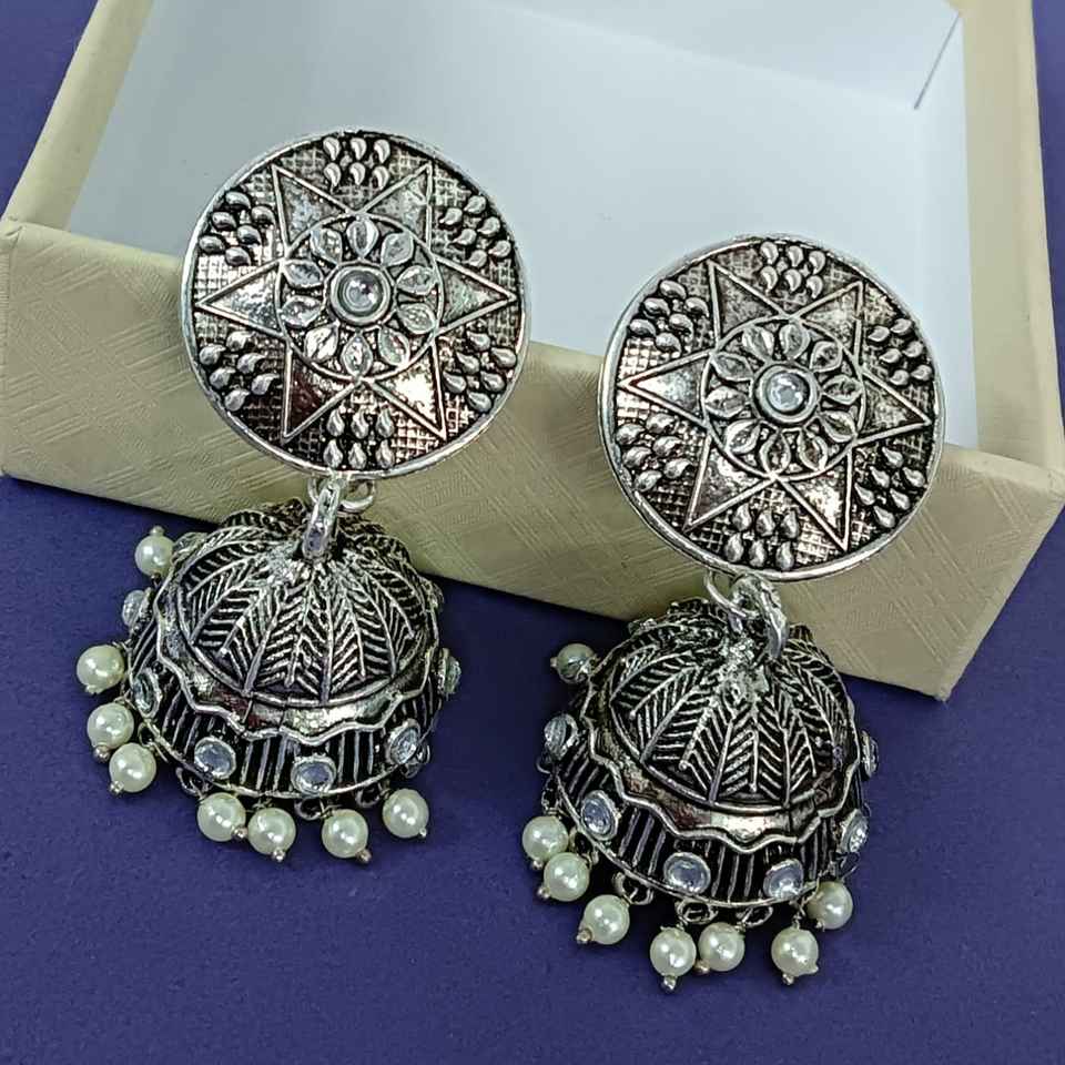 Design:antique handmade boho vintage oxidized silver tone jhumka earrings set