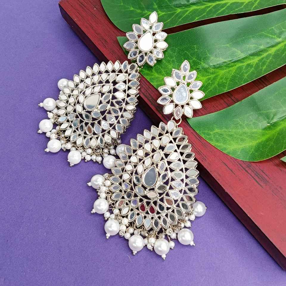 Indian Wholesale Oxidized Ethnic Floral Earrings Crystal Glass Stone Faux Pearl Indian Bridal Jewellery Dangle Earring, White