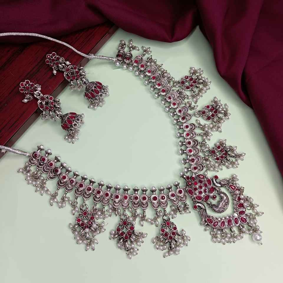 Indian Wholesaler Oxidized Antique Bohemian Faux Pearl Crystal Stone Necklace Jhumka Jhumki Earrings Jewelry for Women