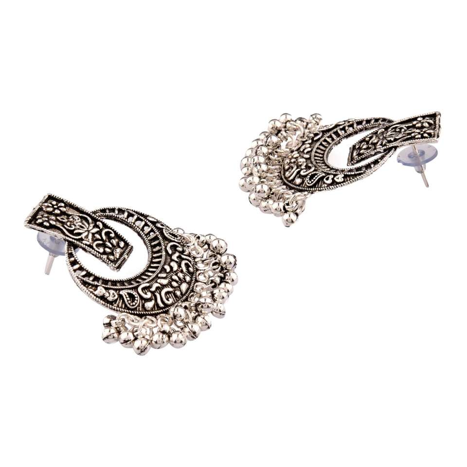 Design:Oxidized antique silver plated chandelier chandbali earrings set