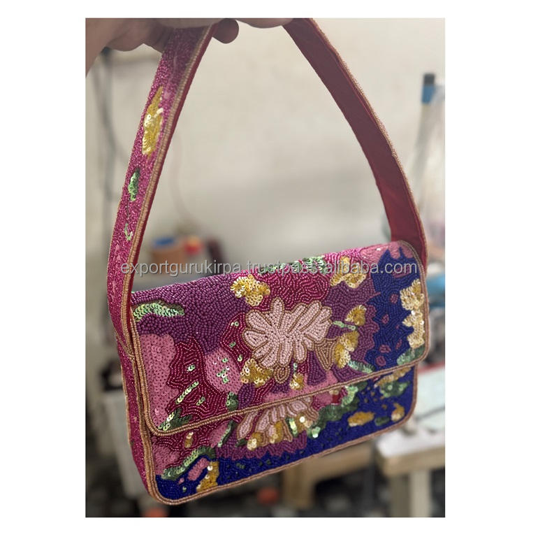 Indian Women Bohemian Style Cotton Shoulder Bags Handmade Beaded Clutch Bag Evening Shopping Boho Style Evening Messenger Bags