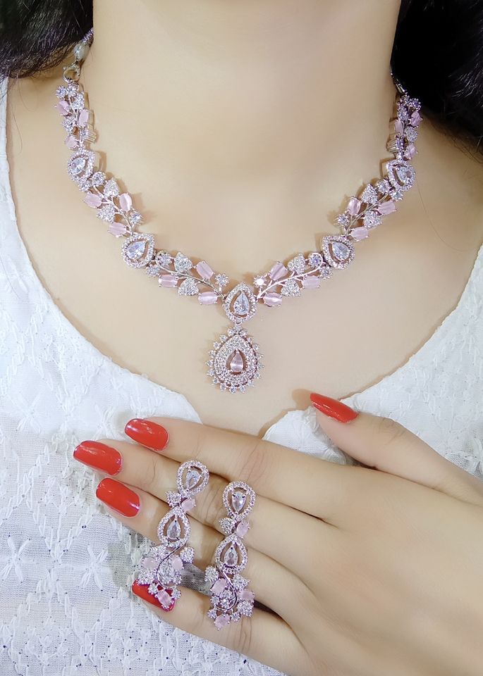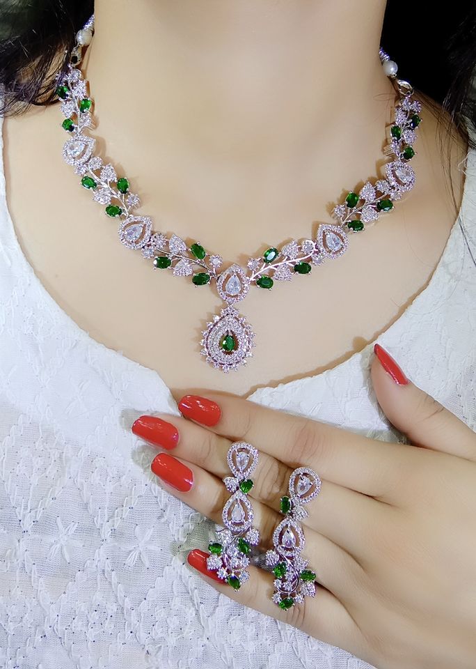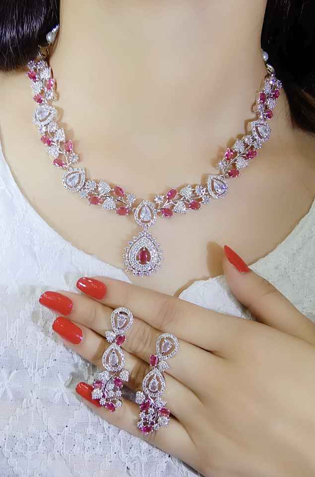Indian Women Jewellery Luxury American Diamond Necklace Set For Women Bridal Party Jewellery With Multi Colour Stones