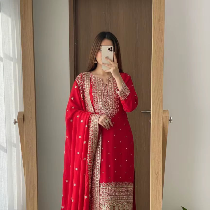 Product Name:Chinon Silk Sequence Embroidery Work Top & Pant Dupatta