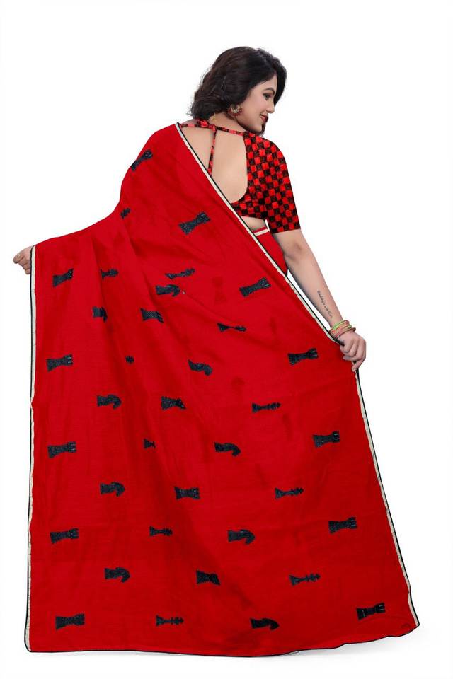 Indian Women Reception Wear Cotton Silk Saree With Embrodery0 Flower Design Work With Unstitched Blouse Wholesale Price Garment