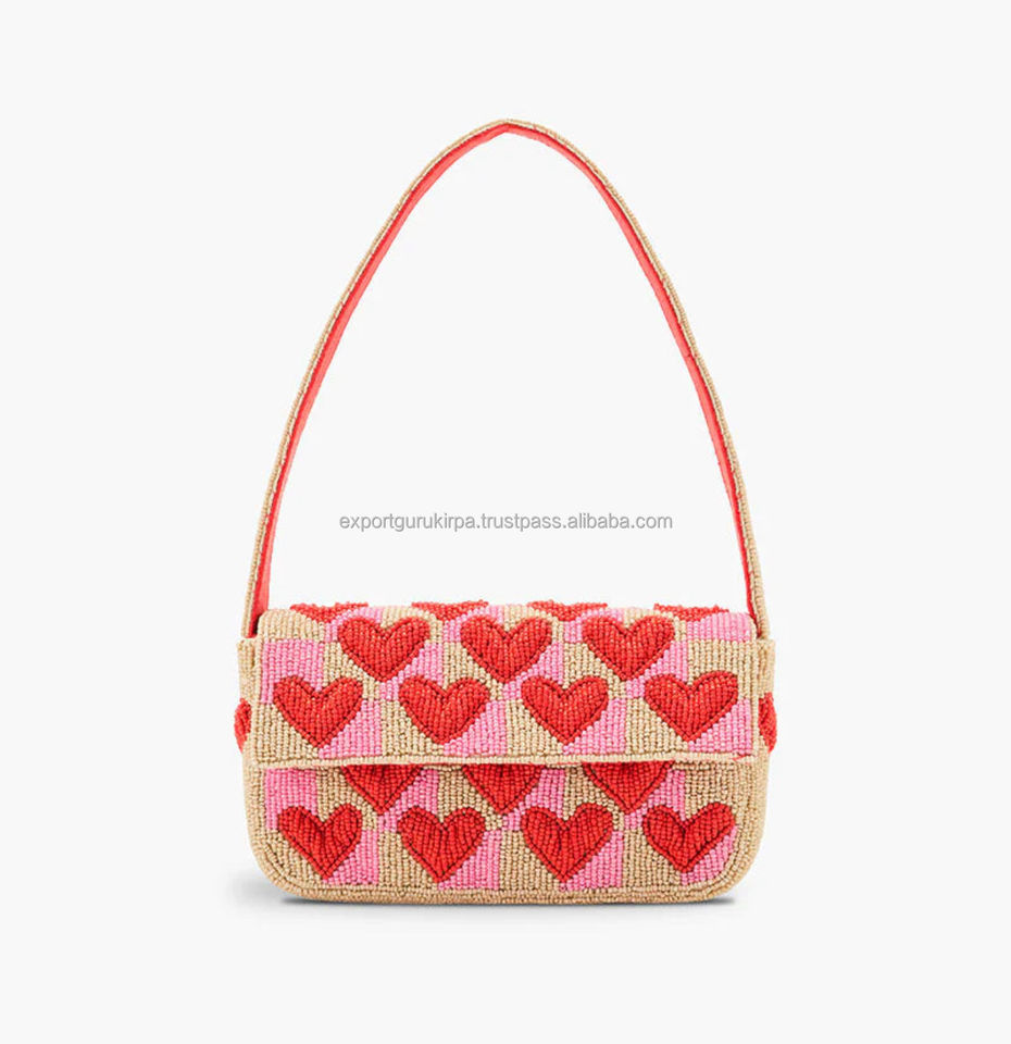 Indian Women's Bohemian Style Designer Handmade valentine Beaded Durable Cotton Clutch Messenger Bags Evening Shopping Party bag