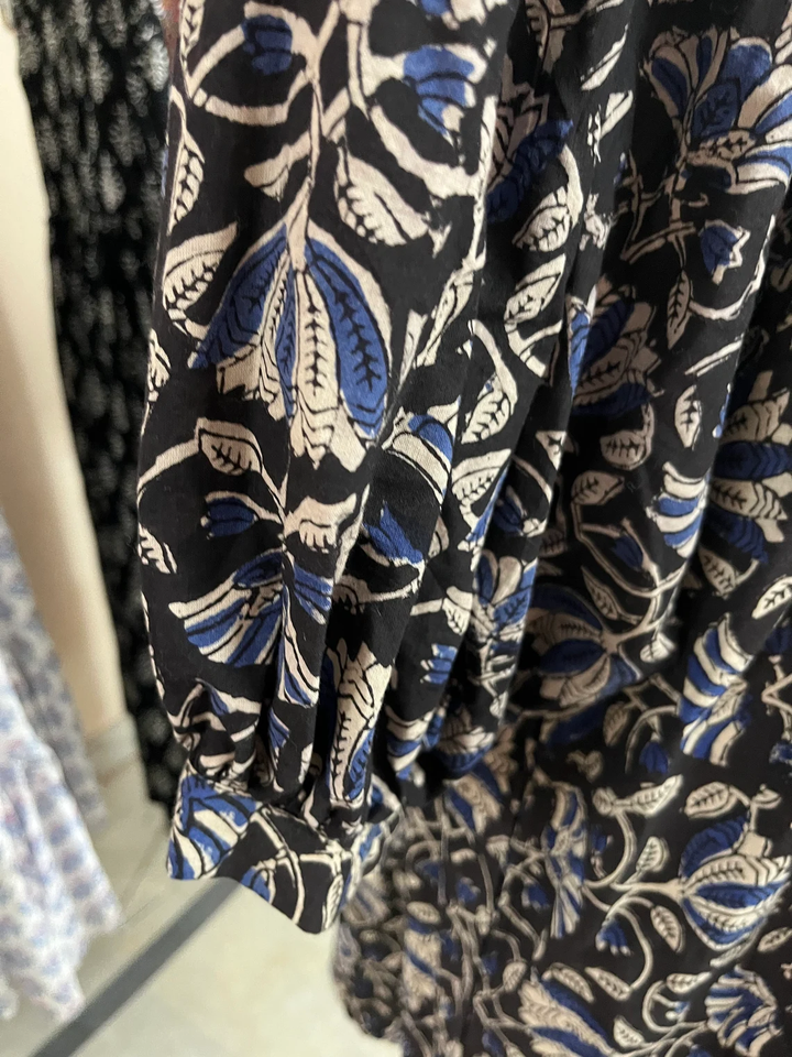 Indian Women's Cotton Dress Hand-Printed Floral Embroidery Casual Maxi Length Featuring Tassel Decoration Sustainable Fashion
