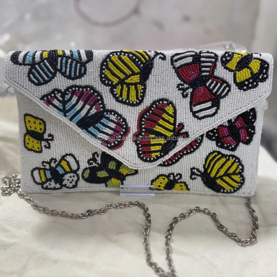 Indian Women's Elegant Boho Designer Cotton Clutch Messenger Sling Bag Handmade Beaded Evening Shopping Party Shoulder Magnet