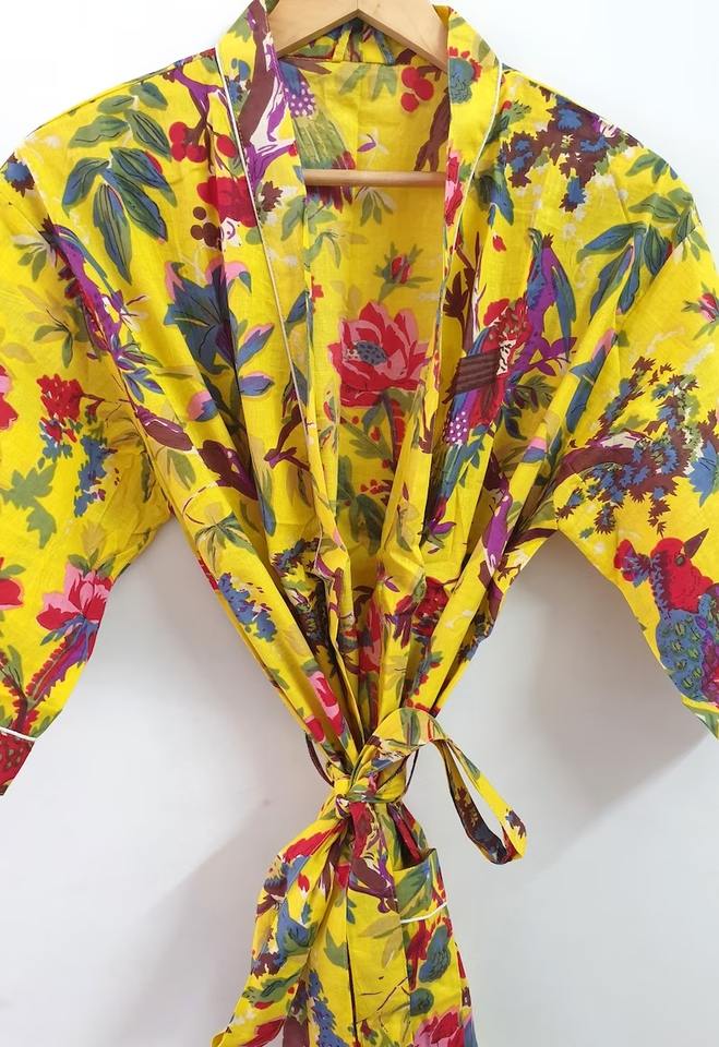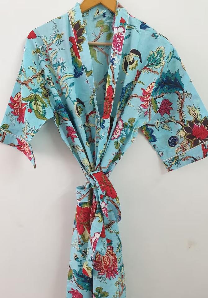 Handmade Maxi Floral Print Cotton Kimono Dress Women's Indian Style Bath Robe Maternity Friendly Summer Beachwear Autumn Spring