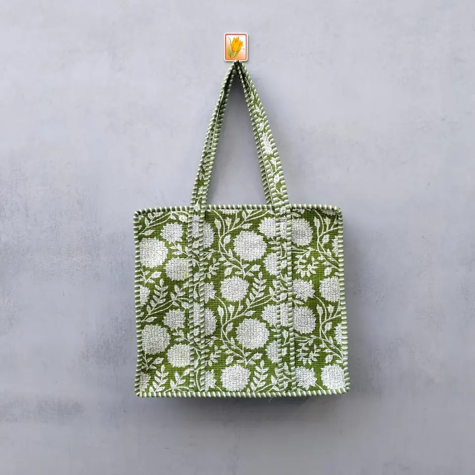Indian Women's Hand Stitched Cotton Tote Bag Floral Quilting Large Casual Shoulder Shopping Bag Solid Color