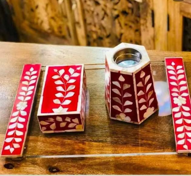Indian Wooden Mother of Pearl Inlay Tealight Bakhoor and Box Set or Ramadan and Eid Gifts