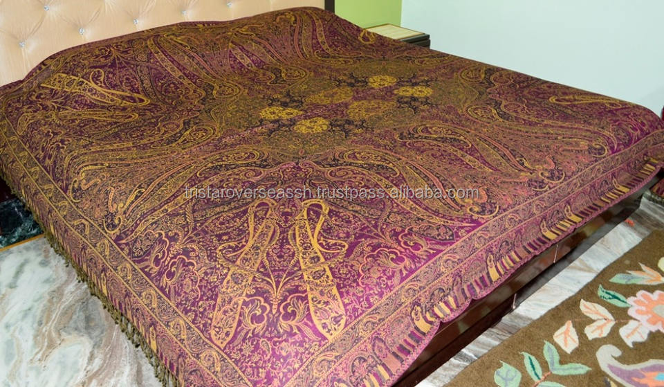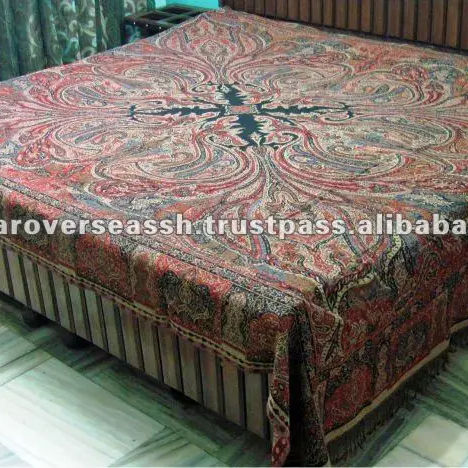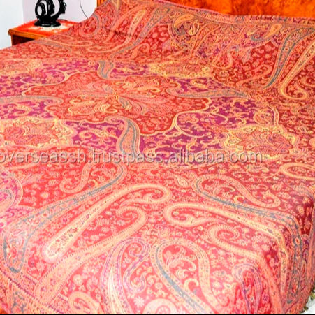 Indian Wool Pashmina Jamavar Silk Brocade Bedspreads & Coverlets for Home Use