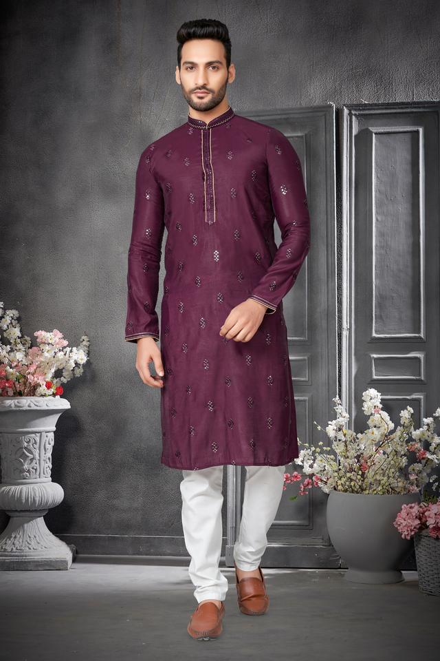 Indian and Pakistani Style Designer Embroidery Work Ready Made Kurta Pyjama Set for Men in Wedding Wear and Festival Function