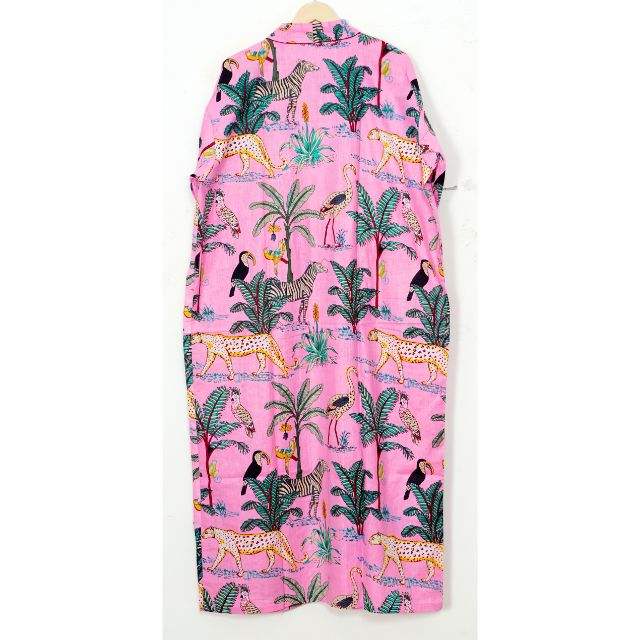 Indian animal Print 100% Cotton Kimono Robe Cardigan Thermal Night Wear Dress Body Cover for Women for Bridesmaids Swim Wear