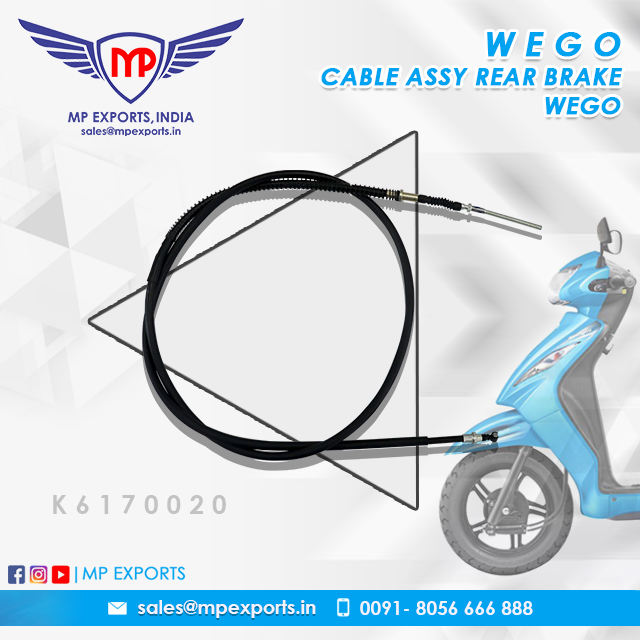 Indian Branded REAR BRAKE CABLE Assembly for TVS WEGO 2 Wheeler spare parts for Sale at Affordable Price
