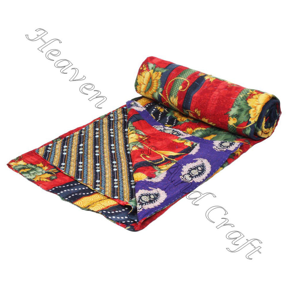 Indian Flower Print Quilt Floral Quilt Bedspread Bedding Blanket Indian Reversible Hand Stitched Heavy Throw Ol Sari Blanket
