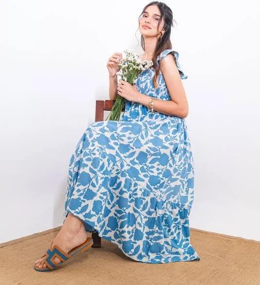 Indian hand block cotton maxi dress floral printed woman fashion party wear dress personalized bride wedding gift summer wear
