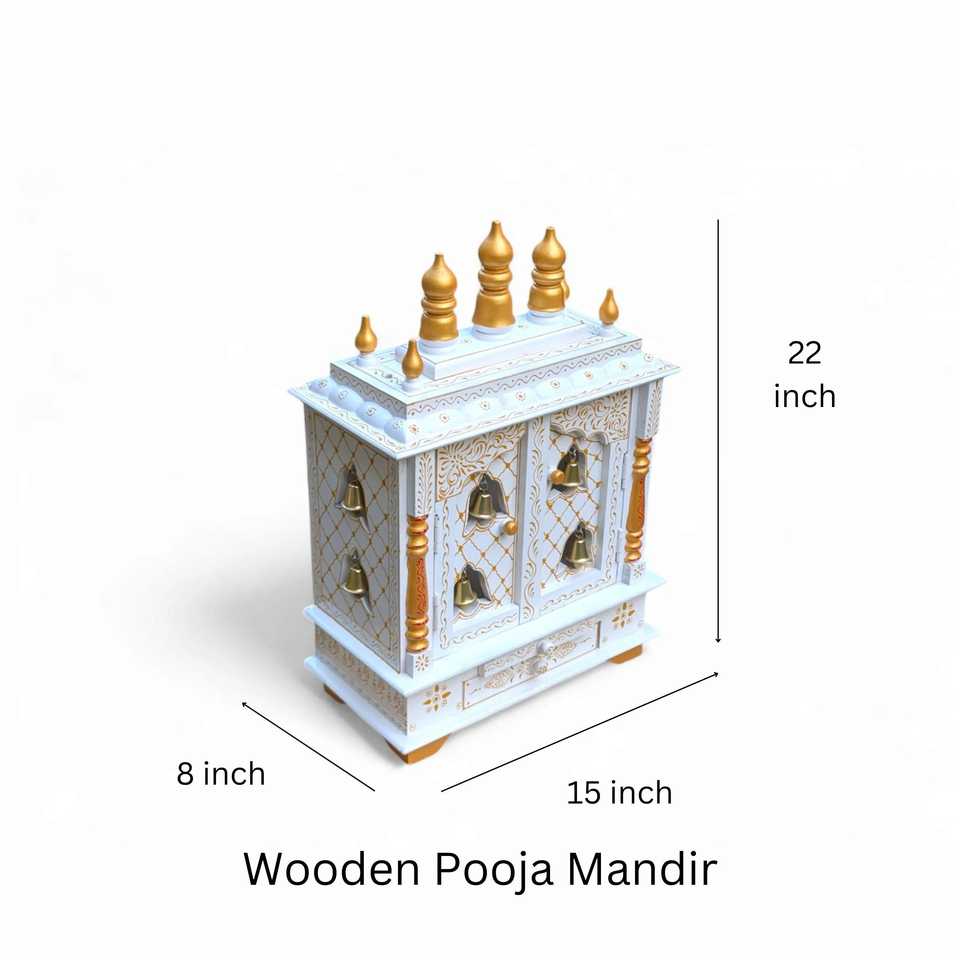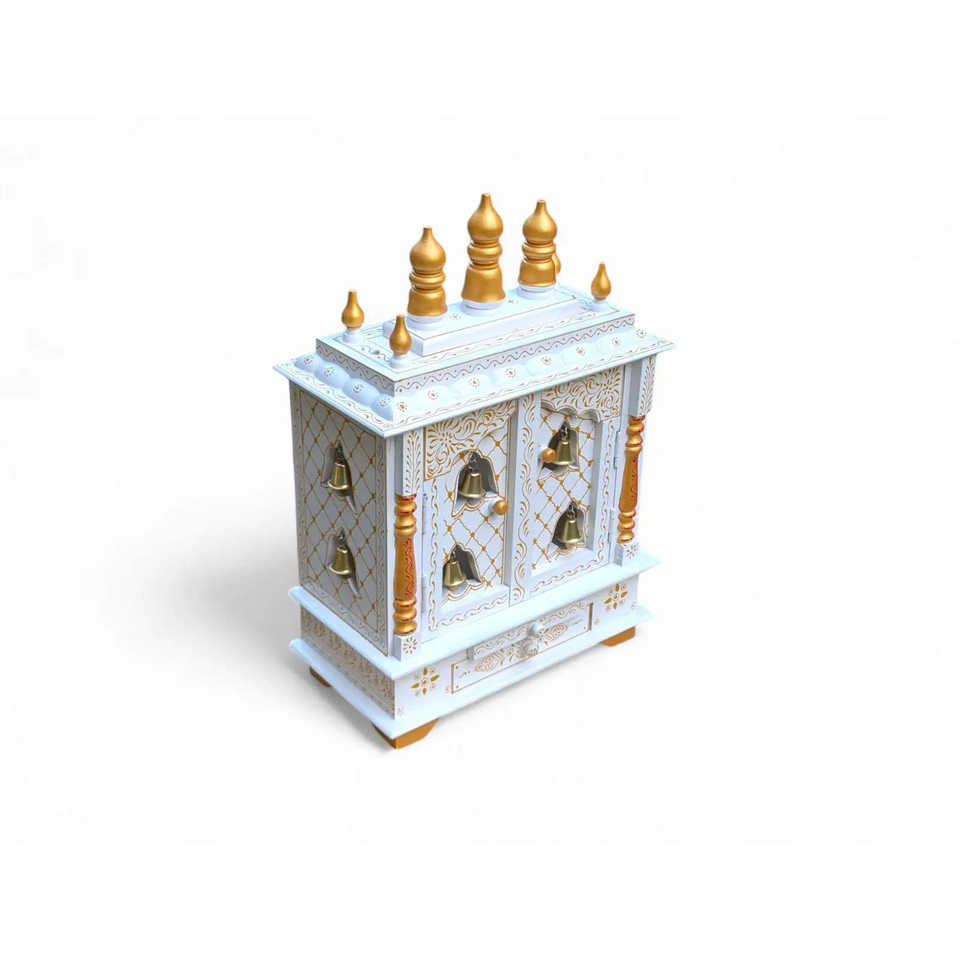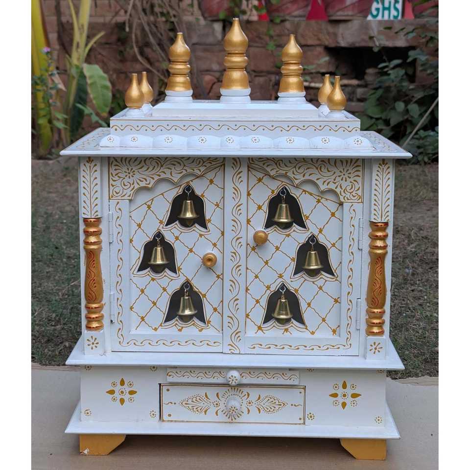 Indian handirafts 15*8*22 Inches Home Decor Wooden Temple with Golden Bells white Gold handpainted Mandir Pooja Ghar for Gift