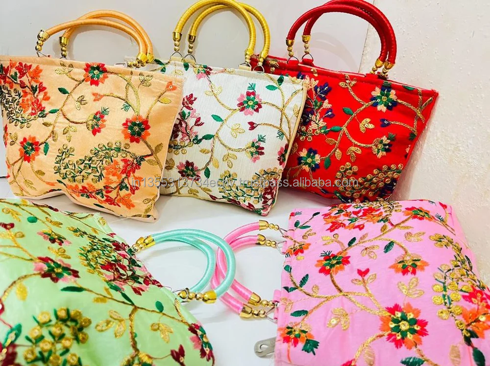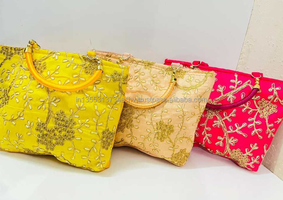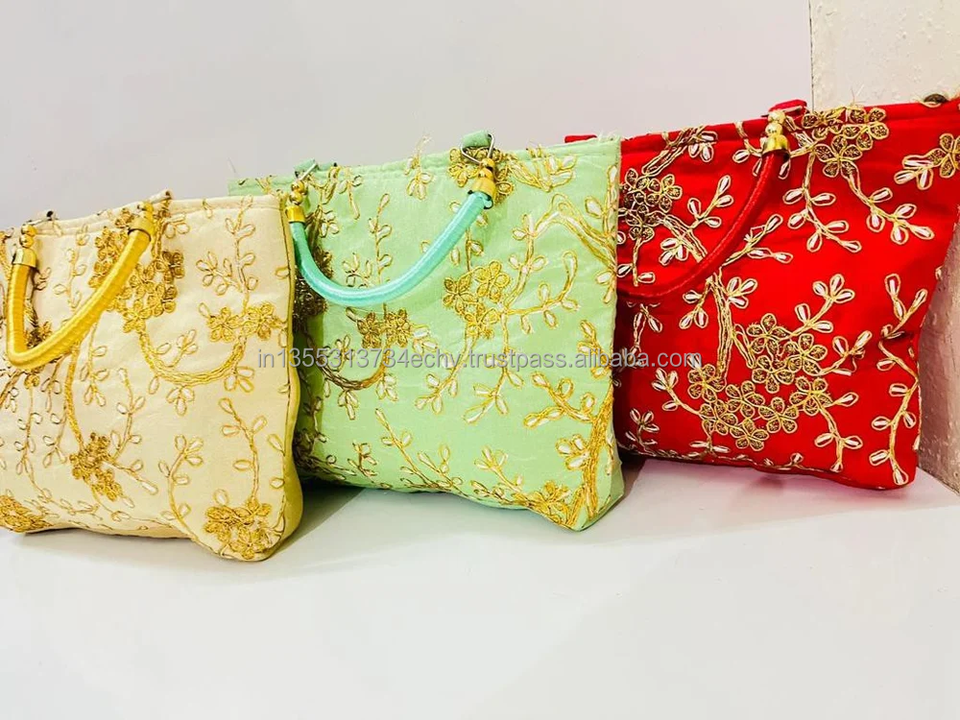 Wholesale Indian Vintage Striped Satin Embroidered Zipper Closure Clutch Bag Square Unisex Wedding Return Gift Bridesmaid