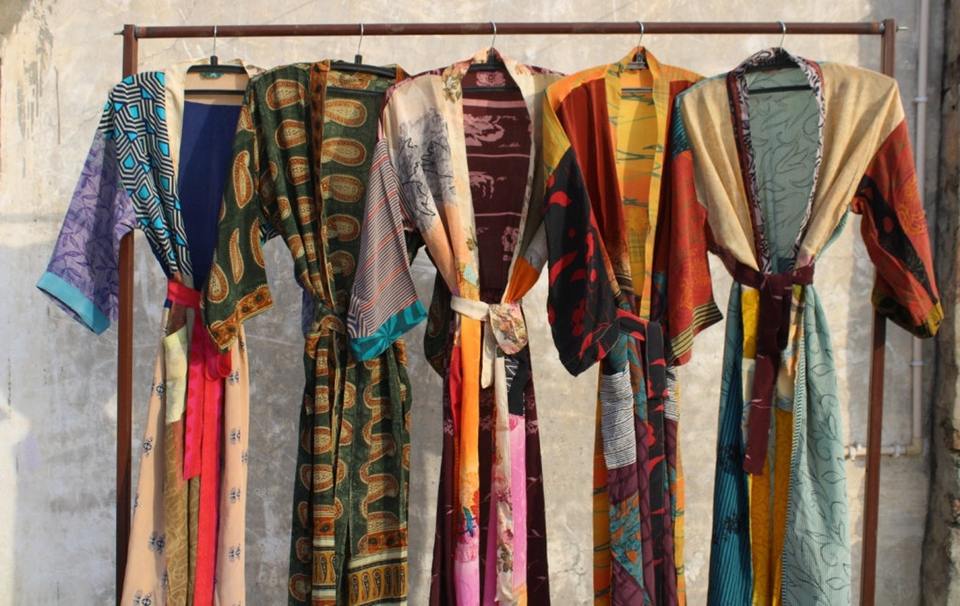 Indian handmade wholesale lot silk kimono woman and man stylish beach wear bath rob kimono Indian printed robe Japanese kimono