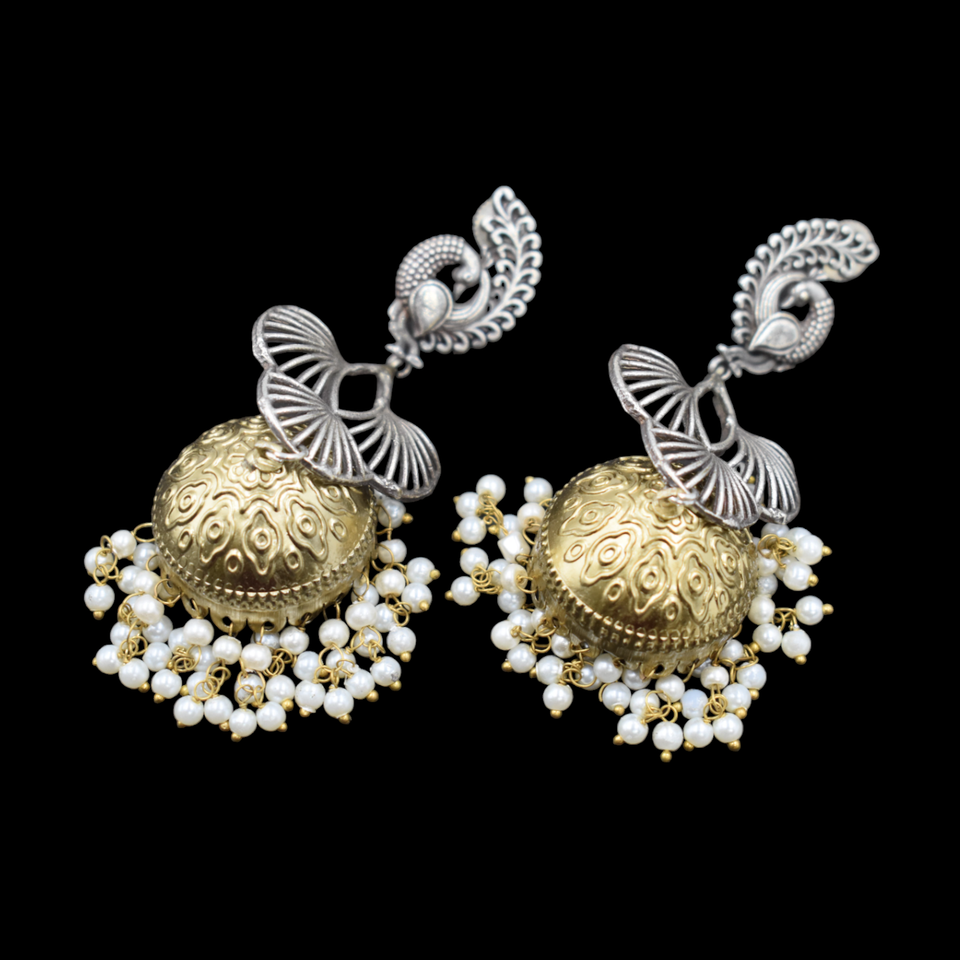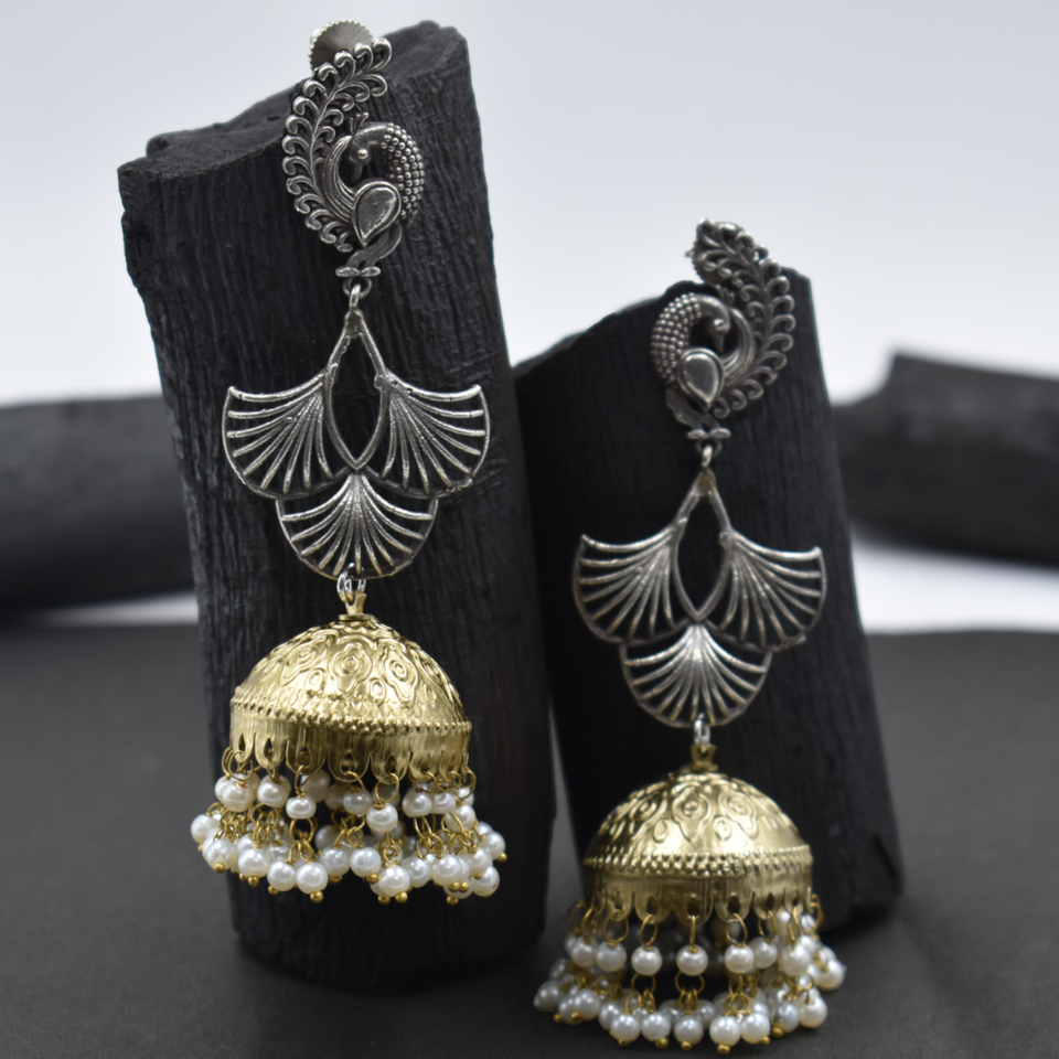 name or words:Silver look alike dualtone jhumka earing