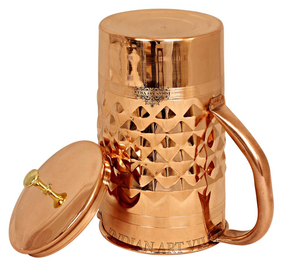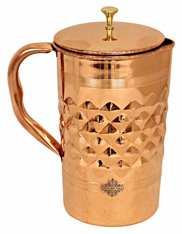 IndianArtVilla Pure Copper Jug Hammered Design Pitcher for Serving & Storage with Brass Knob, Home & Restaurant Use