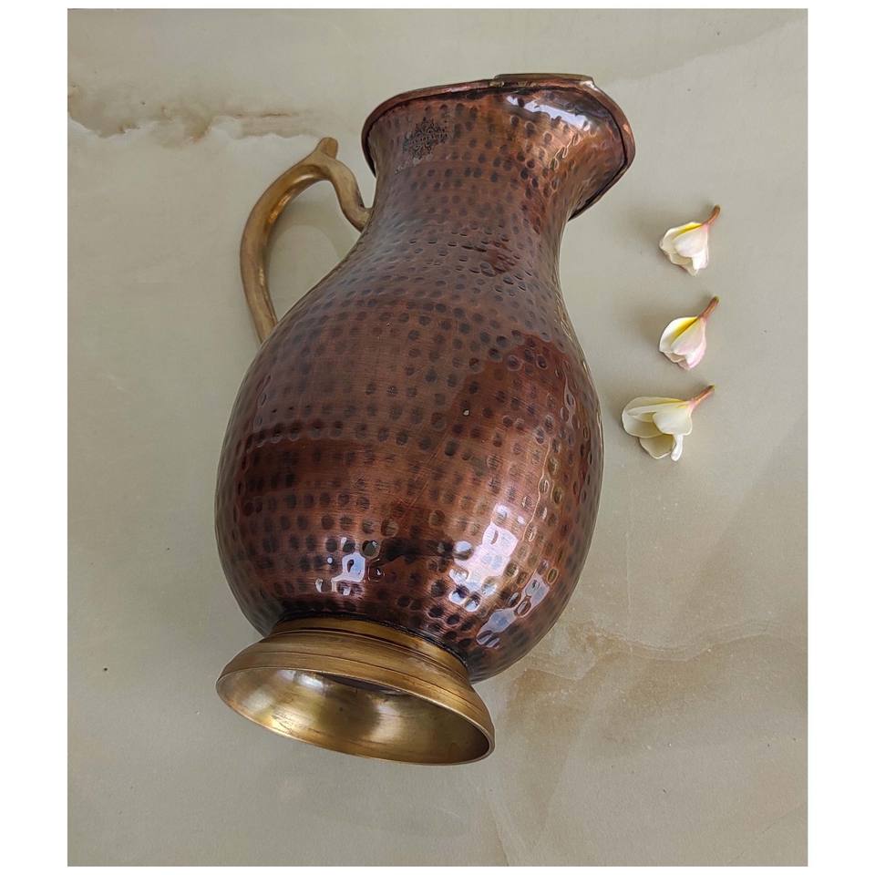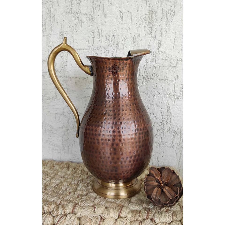 IndianArtVilla Pure Copper Jug Pitcher Hammered Design with Brass Handle- Storage & Serving for Home & Restaurant, 1750 ML