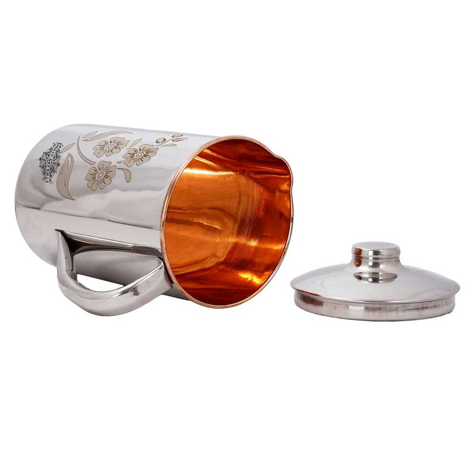 IndianArtVilla Steel Copper Flower Design Jug-Drinkware for Storage & Serving Purpose with Health Benefits