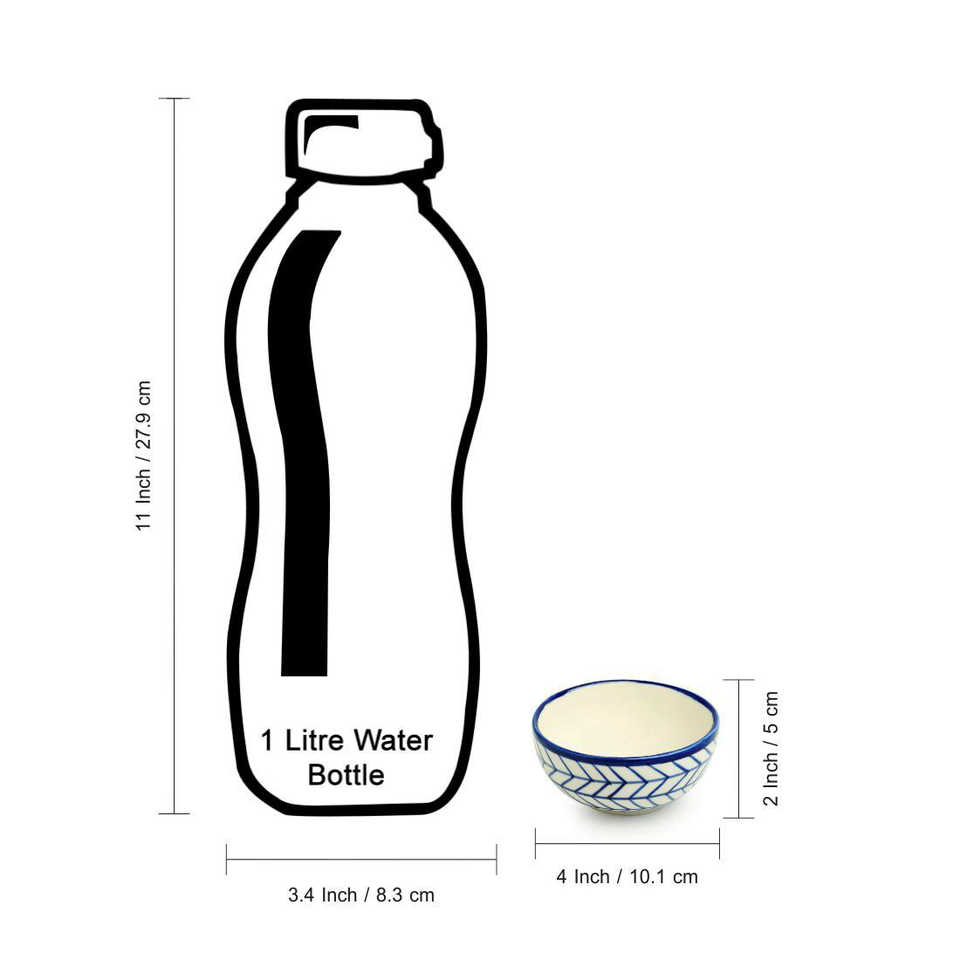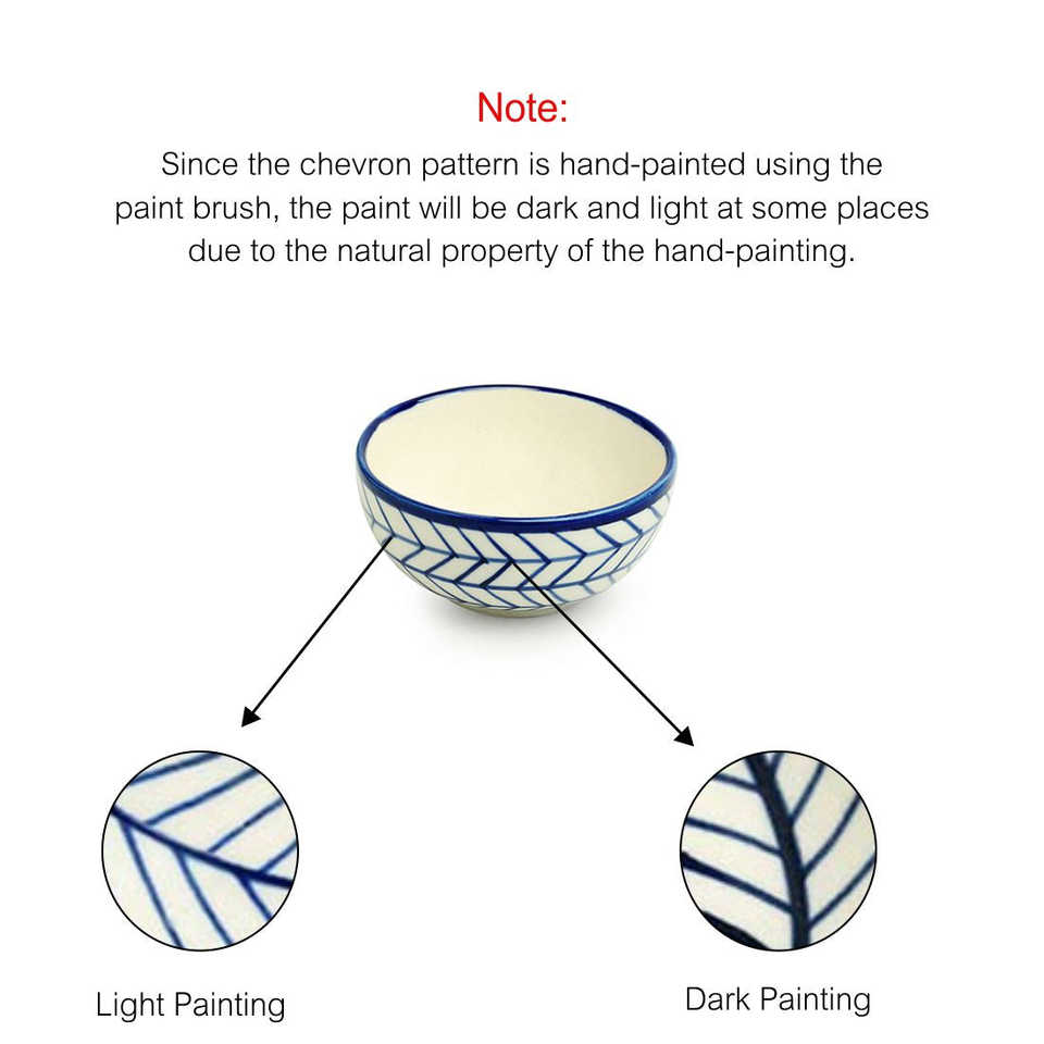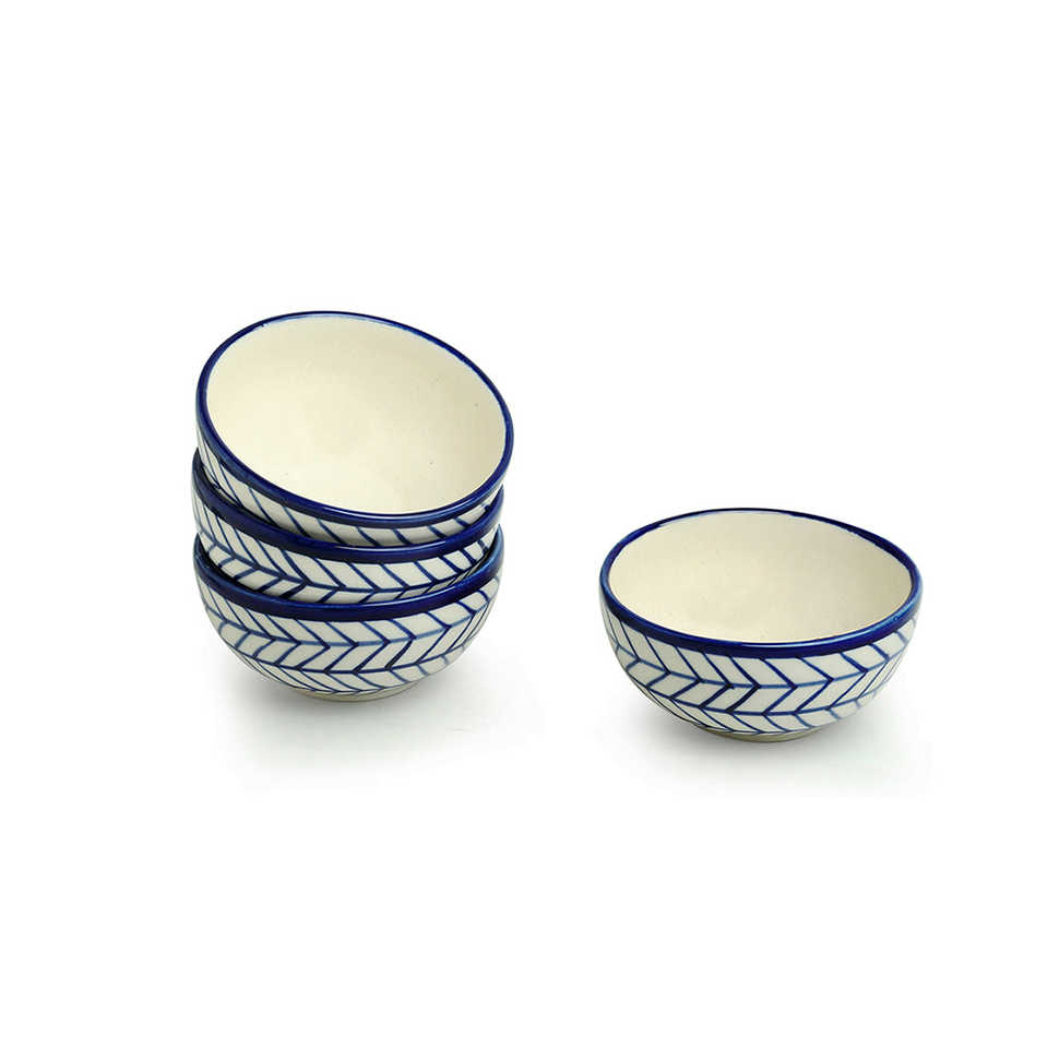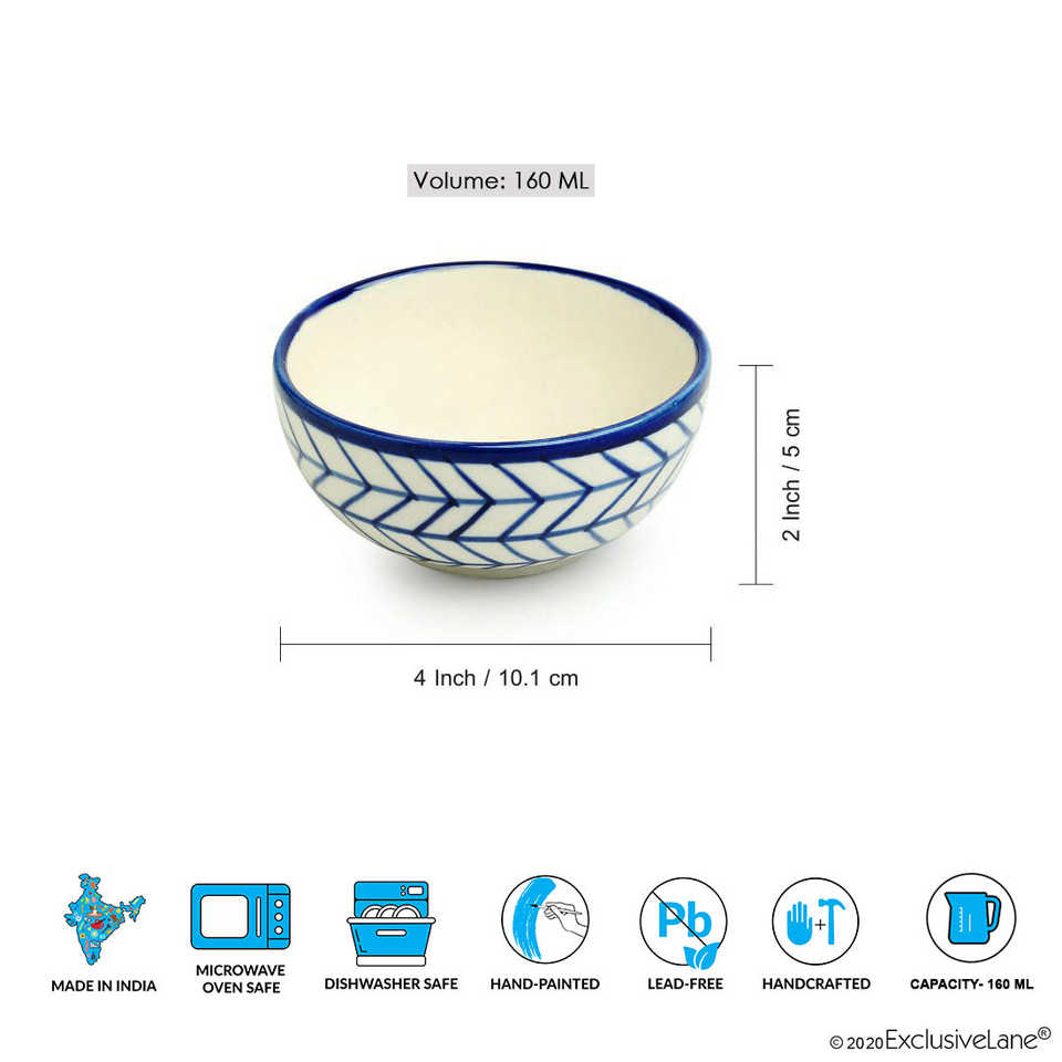 Indigo Chevron Hand-Painted 4.5 Inch Ceramic Salad Bowl Microwave Safe Oval Dining Katoris Set of 4 160 ML