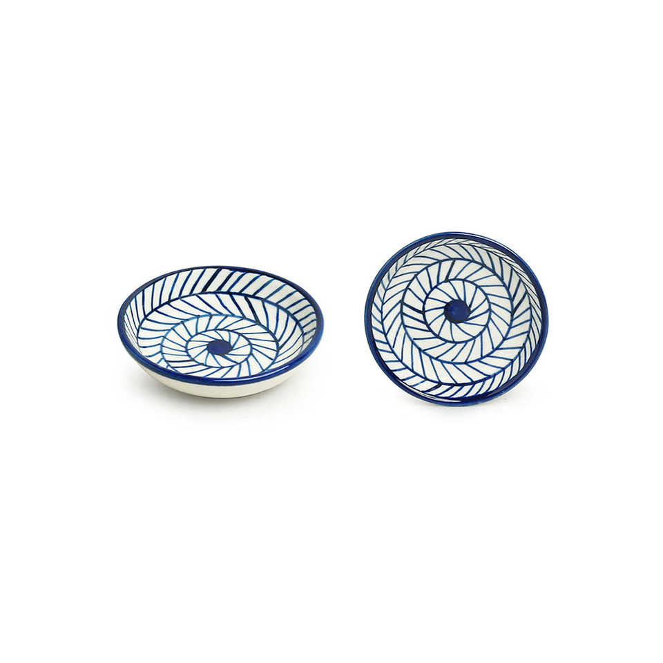 Indigo Chevron Hand-Painted Ceramic Chutney Bowls 4-Pack 25 ML Microwave Safe 4.5 Inch 408g