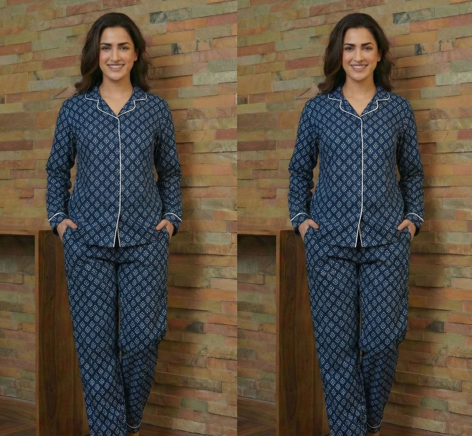 Indigo Cotton Two Piece Pajama Set for Women Hand Block Printed Lounge Wear Bulk Supplier India Export