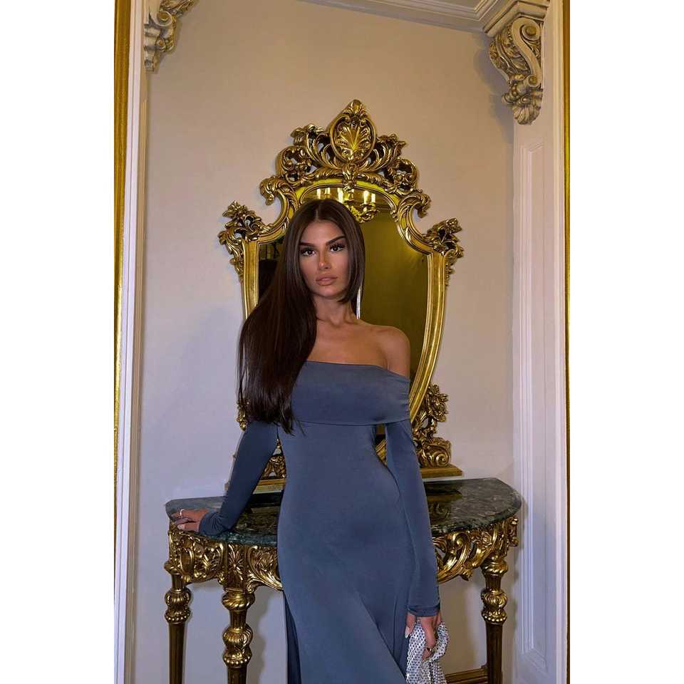 Indigo Elegent Long Sleeve Floral Dress Custom Design Translucent Feature XS Size for Day Club Party Formal Occasions Custom