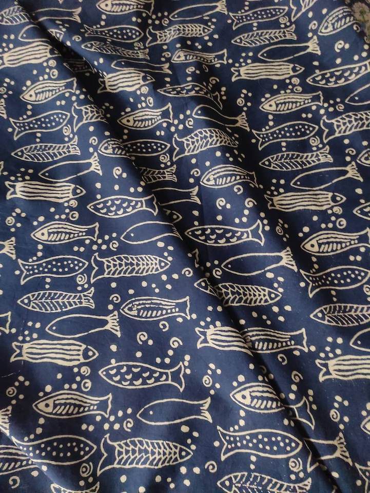 Indigo Hand Block Cotton Fabric Fish Print Cotton Fabric Sewing Fabric Dresses Bags Cushion Curtain Book Binding and All Craft